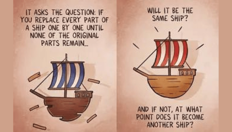 The ship of Theseus, also known as Theseus’ paradox, is a thought experiment that raises the question of whether an object that has had all of its components replaced remains fundamentally the same object.